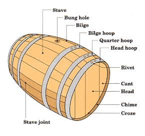 After the hoops were removed, diagonal chalk lines were drawn across the barrel as a guide to replace the staves. As each piece of the barrel is unique, their place in the barrel needs to be precisely marked. Each stave was numbered: Roman numerals one end, Arabic at the other (later covered when the hoops were replaced) to ensure the staves were replaced the right way round. The heads were also numbered with matching Roman or Arabic numbers.