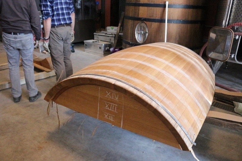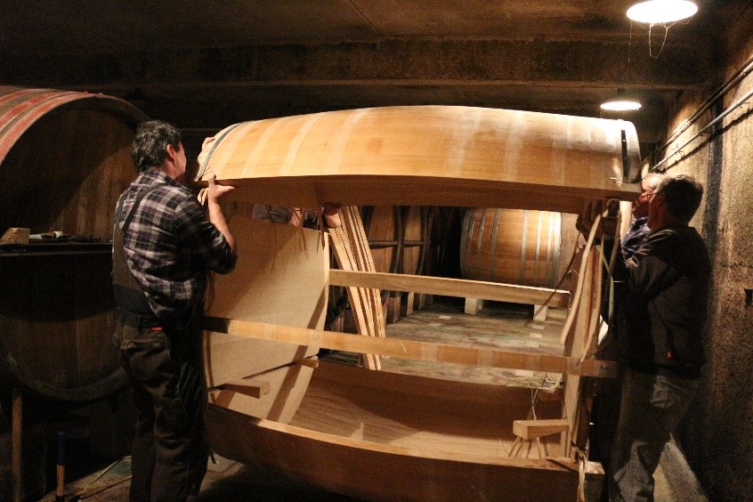 Franz Stockinger arrived with Alexander Wachauer and Tibor Várda and the five foudres on trucks on the Sunday. Early the following morning they started work on the first barrel. Pascal Febvre, head of viticulture at Trevallon, also joined the team.
